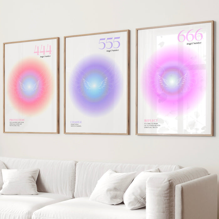 ANGEL NUMBER SET of 9, Trendy Wall Art, Spiritual Poster, Angel Number Print, Room Decor Aesthetic Minimalist, Digital Download, Aura Poster