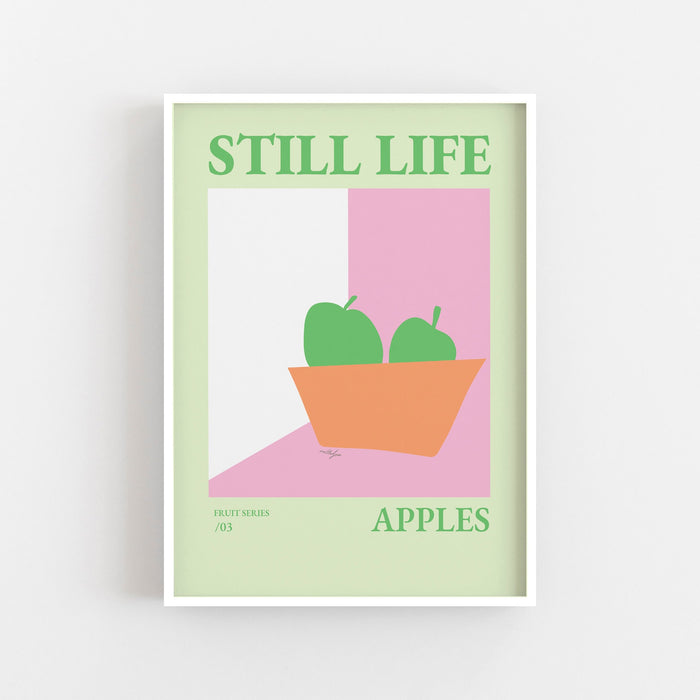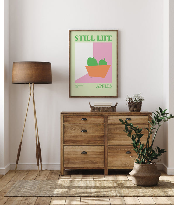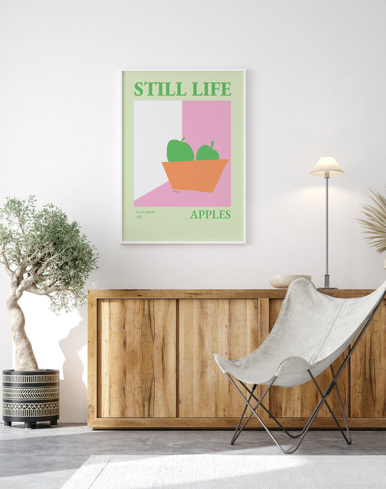 Still Life Apples Fruit Bowl Print, Danish Pastel Poster, Girly Kitchen Poster