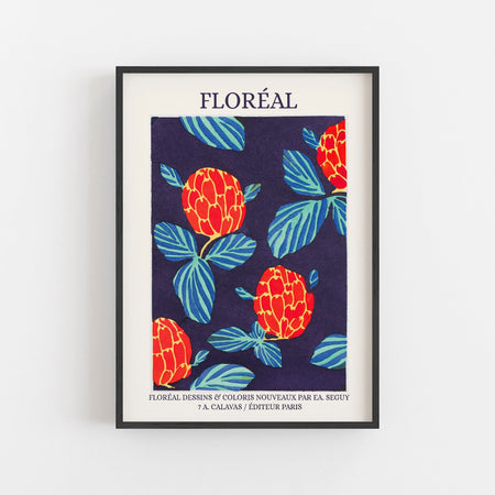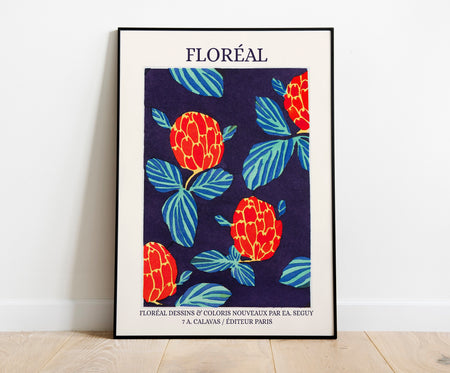 Vintage Tropical Botanical Print, Tropical Home Decor, Exhibition Print Flower Poster, Blue Red Floral Poster, flower Market Poster, PRINTED from $43.00