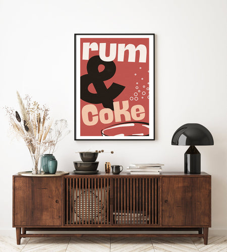 Vintage Rum & Coke Print, A3, A4 Poster, Retro, Gallery Wall, Mid Century Art, Wall Art, Vintage Liquor, Bar Art, Games Room Prints from $49.50