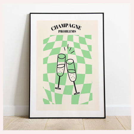 Champagne problems,swiftie gift,funky checkered wavy poster,retro print , retro,disco ball decor,70's preppy poster ,minimalist, green y2k $10.00