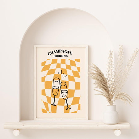 Champagne problems,swiftie gift,funky checkered wavy poster,retro print , retro,disco ball decor,70's preppy poster ,minimalist, y2k art $10.00