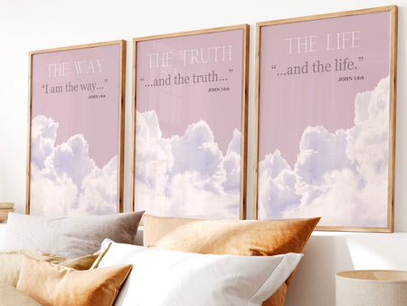 Christian Scripture Wall Art Set of 3 Prints Bible Art Print Gift God Art, The Way The Truth The Life Wall Art, Digital Downloads $14.50