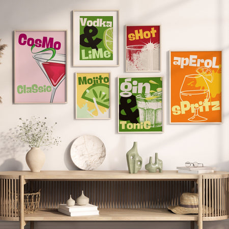 Cocktail Print Set of 6| Colorful Bar Cart Gallery Wall Set| DIGITAL DOWNLOAD| Alcohol Prints| Bar Printable Art| Drinks Wall Decor, funky $14.50