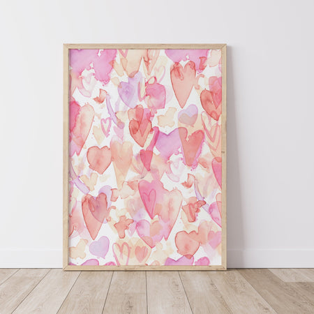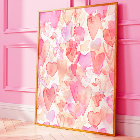 Coquette Hand Painted Hearts Pink Wall Art Retro Aesthetic Print Orange Heart Watercolor Print Abstract Minimalist Digital Art 1 print $5.50
