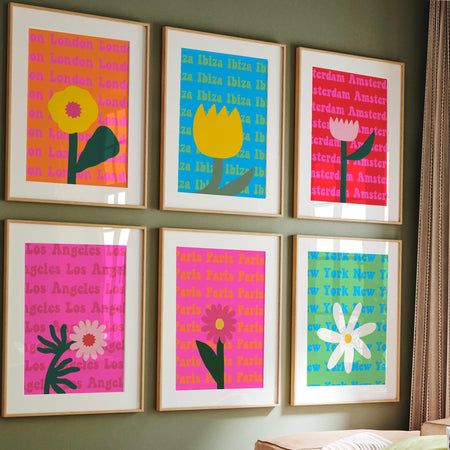 Colorful set of 6, gallery wall set of 6, printable wall art, travel poster, pink orange wall art, orange pink wall decor, printable $10.00