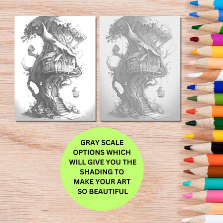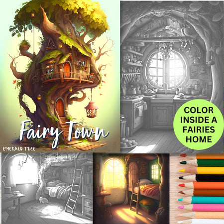 Cottagecore Coloring Page Fairies House Delicate Printable Adult Coloring Page Kid Coloring Book Digital Download Grayscale Instant Download $5.00