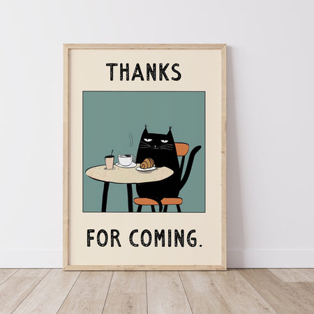 Cute Cat Coffee Print Modern Kitchen Decor Retro Poster Funny Pop Art Kitchen Art Hand Drawn Illustration Coffee Lover Gift Digiital 1 print $9.50