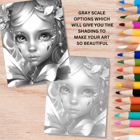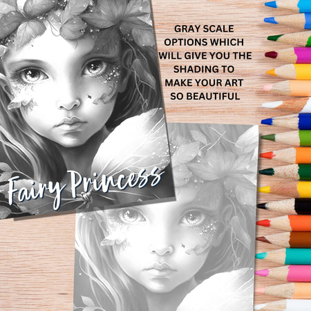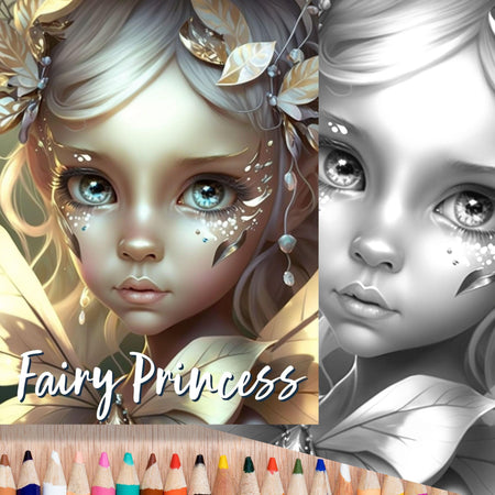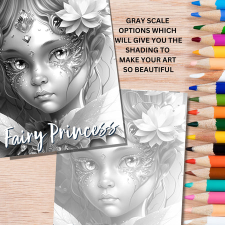 Delicate Fairy Princess ColoringPage | Fantasy Coloring Book, Adult + kids, Instant Download - Grayscale Coloring Page - Gift, Printable PDF $5.00
