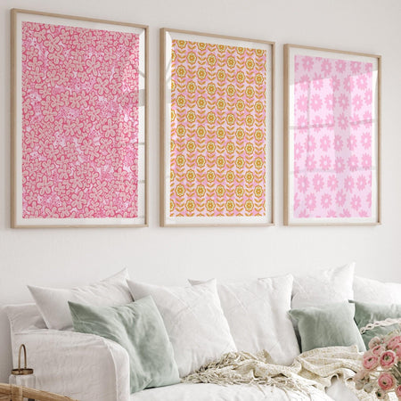 Daughter gift, pink orange wall art, digital download, orange pink decor, daughter gift art, printable set of 3, daughter birthday gift, $15.00