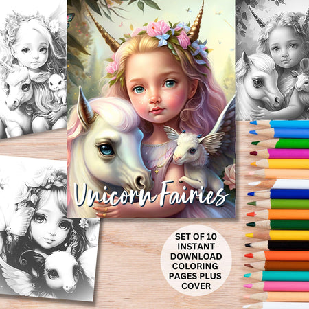 Delicate Fairy Coloring Book | Printable Coloring Pages Set of 10 Fantasy Sheets | Instant Download Fantasy Fairies Unicorn Coloring Pages $5.00