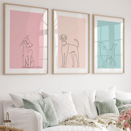 Gallery wall art set of 3, dog prints, boho dog line art poster, blush pink print, pale pink wall decor, minimalist wall art, pink wall art, $12.00