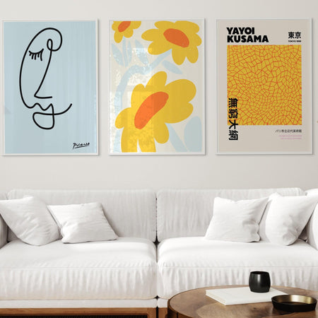 Gallery wall set of 3 prints,picasso print, flower market print,yayoi kusama poster,matisse cut out,trendy wall art,digital download,orange $15.00