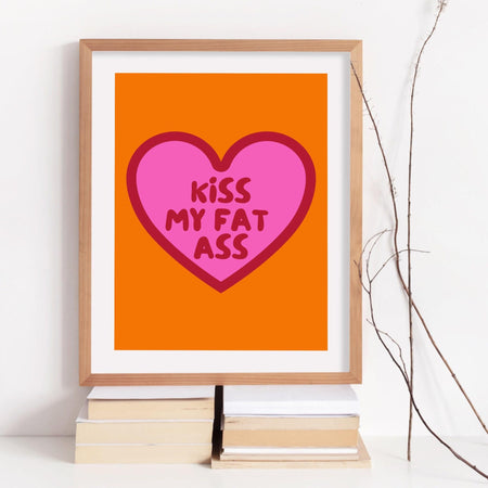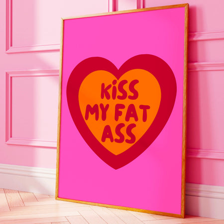 Kiss my fat ass, body positivity art, trendy retro wall art, funny poster, orange and pink maximalist aesthetic preppy dork printable $10.00
