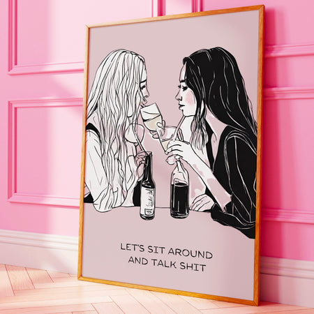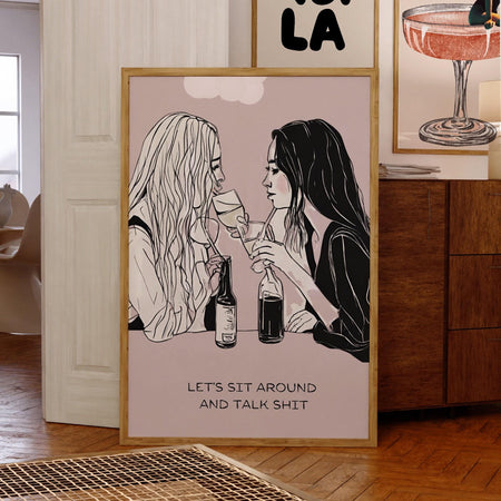 Let's sit around and talk shit-cocktail wall art-bar cart prints-digital prints- pink wall art-cocktail art-minimalist art-bar cart-dorm $10.00