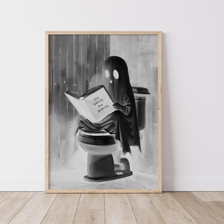 Bathroom art cute booklover halloween wall art ghost funny toilet halloween bath art print black and white kids wall art digital download $9.00