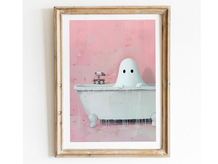Bathroom art cute ghost in bath funny halloween pink bathroom print nursery wall art digital download $6.50