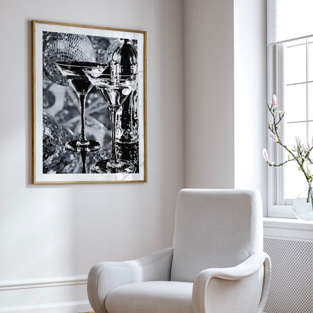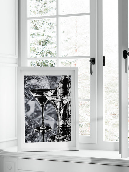 Printed Disco Martini Wall Print, Retro Photo Poster, Black and White Print, Alcohol Vintage Wall Decor, Fashion Girl Print | Disco Poster, from $43.00