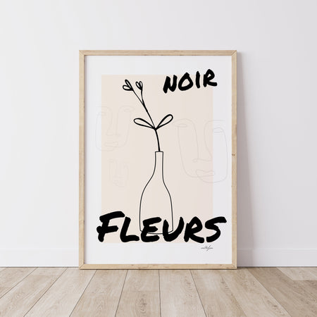 Black Flower Poster, French Flower Poster, Black Wall Art, Noir Fleurs, Minimalist Art, Modern Art, Gift For Her, Line Drawing, Graphic Art from $49.50