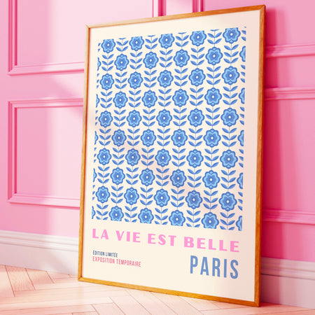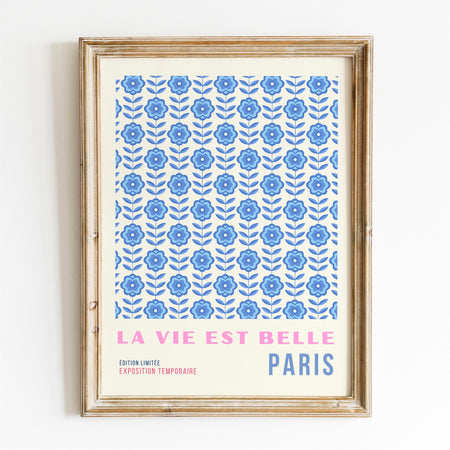 Blue Abstract 70s Style Poster, 60s Flower Print, Paris Exhibition Travel Poster, Digital Download $9.50