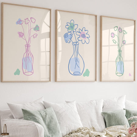 Blue coquette girly bedroom gallery wall flowers cottagecore printable dorm decor gift cute minimalist digital download wall art set of 6 $15.00