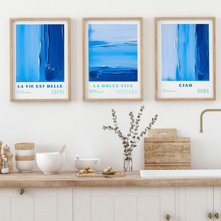 Blue abstract painting, printable set of 3, maximalist art, digital print, blue gallery wall art print, coastal decor, bright art $15.00
