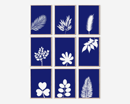 Blue wall decor gallery set of 9, fern leaf prints, botanical prints, trendy poster set, minimalist art set, blue white wall art, botanical $12.00