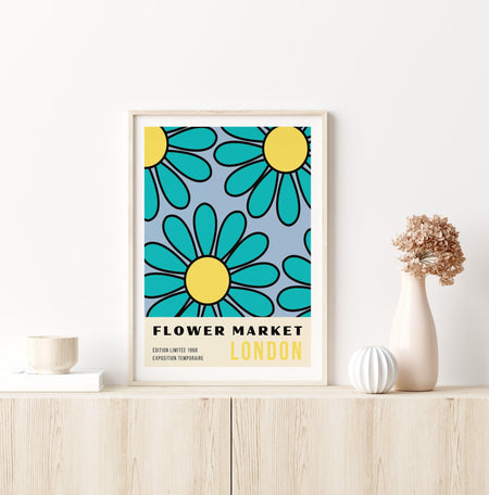 Blue flower market print, digital download, botanical poster, flower market, botanical wall art, digital art print, flower market print $10.00