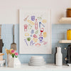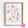 This is a beautiful fun retro style kitchen print The perfect gift for a friend who loves their dinner parties. Great for a birthday or christmas gift or will look fabulous in the kitchen or dining area.