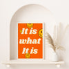 It is what it is, wall print, bubble writing, dork room wall art, pink orange decor, Orange pink wallart, Trendy art, funky art, roommate