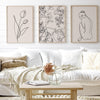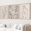 This Gallery Wall Exhibition Set of 3 Prints includes Neutral Botanical and female body Line Art. Neutral gentle Home Deco. Digital instant downloads.