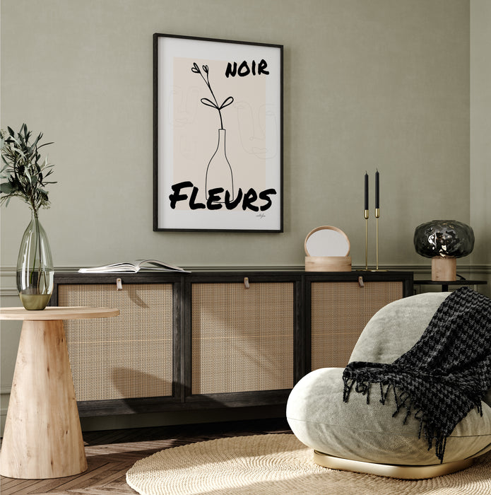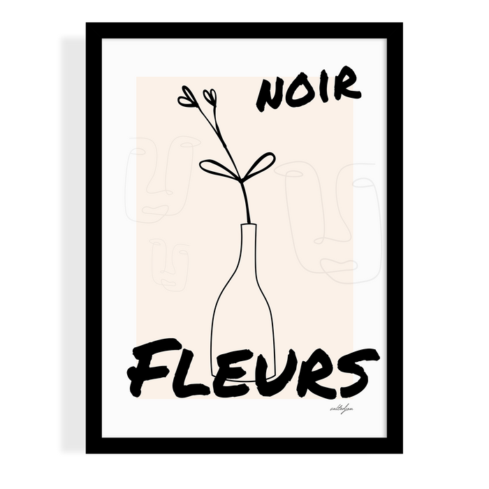 Noir Fleurs by saltedjam. This original print features illustrations of floral and transparent face figures, with a contrast of bold graphical type in a monochromatic black giving simplicity to the motif.