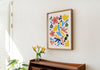 Orange Blue Pink Abstract Flower Print Art Poster, Retro Flower Print Poster, Floral Print, Orange Blue Pink Decor, Flower Poster