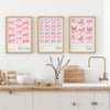 A bundle of 3 beautiful pink and blue abstract travel floral digital prints Rome, Ibiza, New York, Paris and Rome work together or on their own in your dining room, bedroom, lounge area or bathroom. All sizes provided of each print are included.