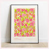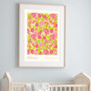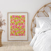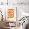 Pink roses print, flower market digital download, 70s style poster, 60s flower print, pink orange decor, pink green wall art, printable art