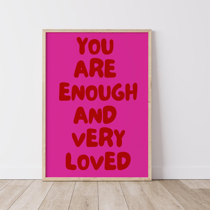 You Are Enough? This is a stunning Positive Quote Dopamine Decor style poster in Red and Pink. This digital download prints look great in any room, dorm, office or classroom. You can print from big too small in all sizes. Perfect for a lounge, dorm room or bedroom art or a gift for someone you love who needs a reminder that the best can happen. So easy to download and use.