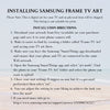 - How-to guide for uploading art to your Samsung Frame TV (however, please be familiar with your TV and the SmartThings app as I'm unable to help with TV tech support)
