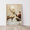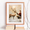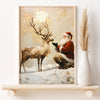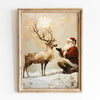 Santa Vintage Painting Reindeer Traditional Christmas Art Prints Beige Wall Art Retro Xmas Cosy Christmas Printable Reindeer Digital Print