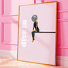 Trendy Retro Wall Art, Disco Ball Head Aesthetic Print, Pink Wall Decor,Pink Print, Funny Art, Instant DownloadD Funky 70s Print Girly Dorm