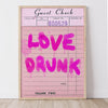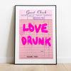 Guest Check Digital Download "Love Drunk ". You can print from small too extra large. Perfect for a game room, lounge, dorm room or bedroom art. So easy to download and use.