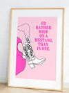 IT'S BETTER TO RIDE ON A MUSTANG THAN IN ONE! This print is a digital download. A fantastic gift for your best friend or would look great in your dorm room. Pink Cowgirl boots poster perfect for every cowgirl in town. Easy to download in every size you should need. DOWNLOAD ALL SIZES INCLUDED AND USE (FOR PERSONAL USE ONLY) AS MANY TIMES AS YOU LIKE!