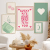 Trendy Retro Wall Art Set of 20 , Retro Trendy Aesthetic Print Pink and Green Poster, Lucky You Print, Trendy Wall Decor, Funny Art, Digital