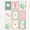 Set of 20 digital download prints in every size you will need. Trendy Retro Wall Art Set of Pink and Green prints including a couple of extras in black and white. Retro Trendy Aesthetic Prints, Pink Ace Card Poster, Lucky You Poster, Trendy Wall Art, Funny Art, Digital, Playing Card Pattern set.
