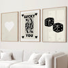 This Lucky you beige and black card bundle of mix'n'match digital download prints looks great in sets or as individual prints. You can print from big to small in all of the prints. All 9 included to create gallery walls. Perfect for a game room, lounge, dorm room or bedroom art. So easy to download and use.