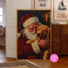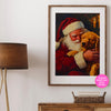 Vintage Christmas Print Santa Printable Dog Painting Traditional Santa Vintage Christmas Art Prints Red Wall Art Retro Xmas Digital Print