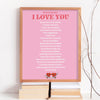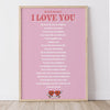 Ways to say I love you is a beautiful gentle reminder or a gift for a loved one. Perfect gift for christmas or a special anniversary. This digital download prints look great in ant room. You can print from big too small in all of the prints. Both included to create a gallery wall. Perfect for a game room, lounge, dorm room or bedroom art. So easy to download and use.