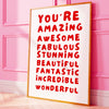 You Are Amazing Pink Red Poster, Funky 70s Pink Wall Art, Digital Artwork,Printable, Girly Dorm Room Art Trendy Retro Gift Digital Download