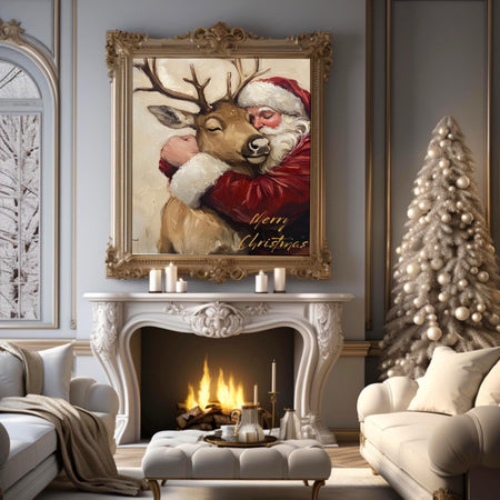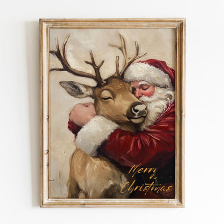 Retro Santa Christmas Art Christmas Reindeer Print Holiday Printable Xmas Wall Art Seasonal Wall Art Christmas Wall Decor Santa Printable $7.50