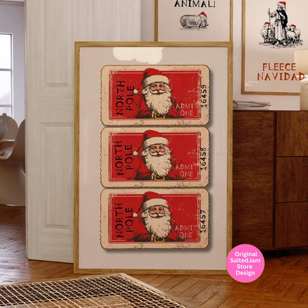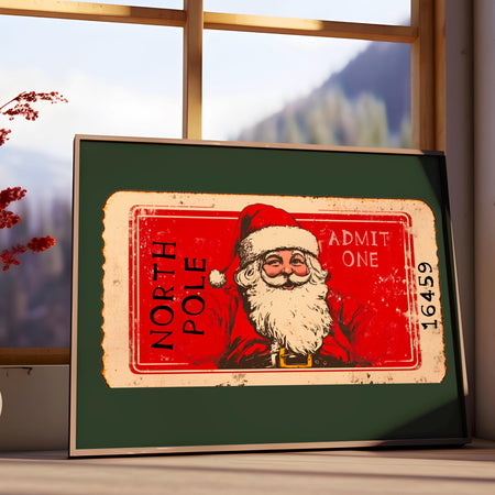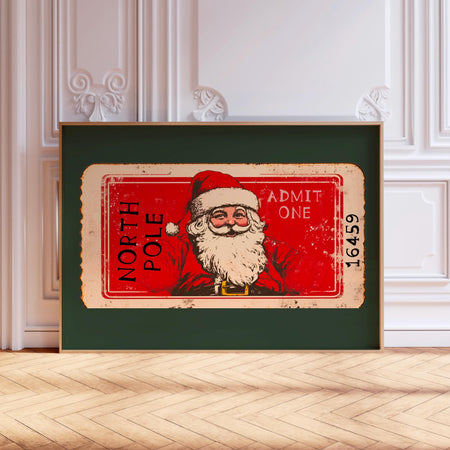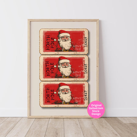North Pole Ticket Print Santa Christmas Decor Retro Vintage Christmas Prints Christmas Wall Art Xmas Holiday Decor Funny Cute Digital print $9.00
