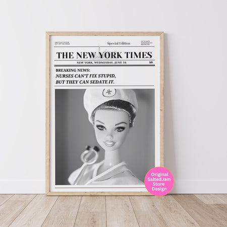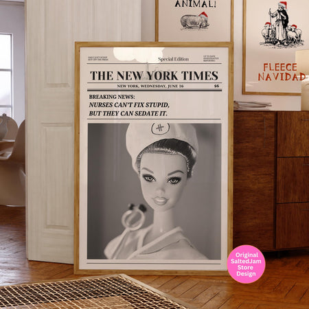 Trendy Nurse Newspaper Print Funny Nurse Gift Wall Art Preppy Vintage Decor Gift for Piku Nurse Decor Bar Cart Wall Art Retro Doll Printable $10.00